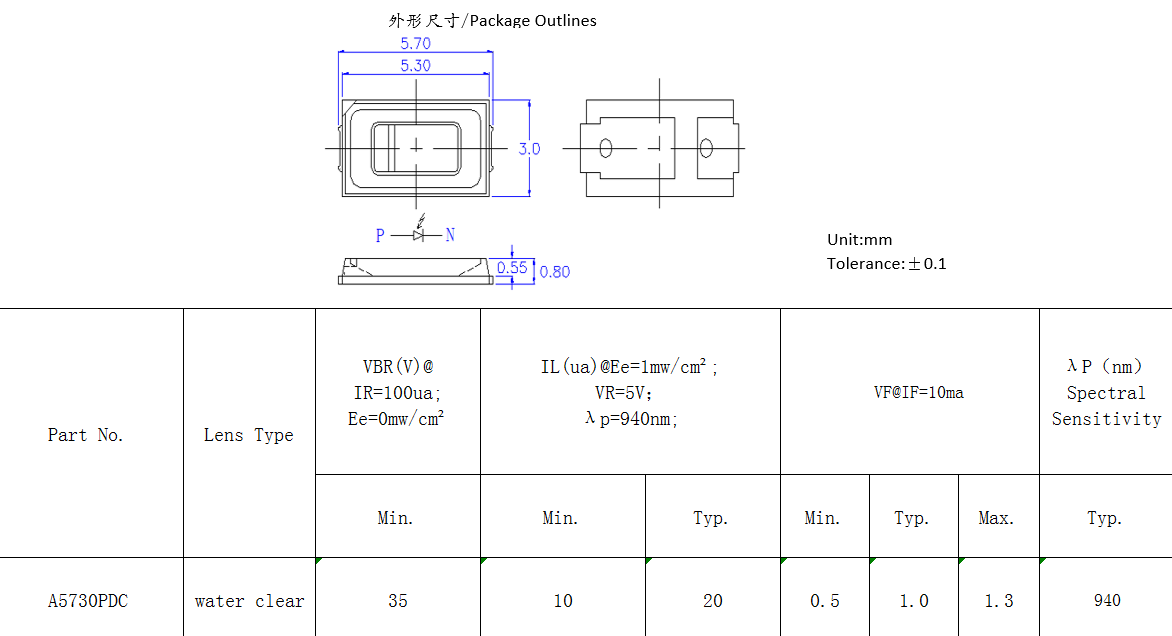 貼片紅外接收管。特征:紅外輸出功率高,響應速度快。應用:高速紅外通信,光學開關,光電傳感器,攝像頭,煙霧傳感器