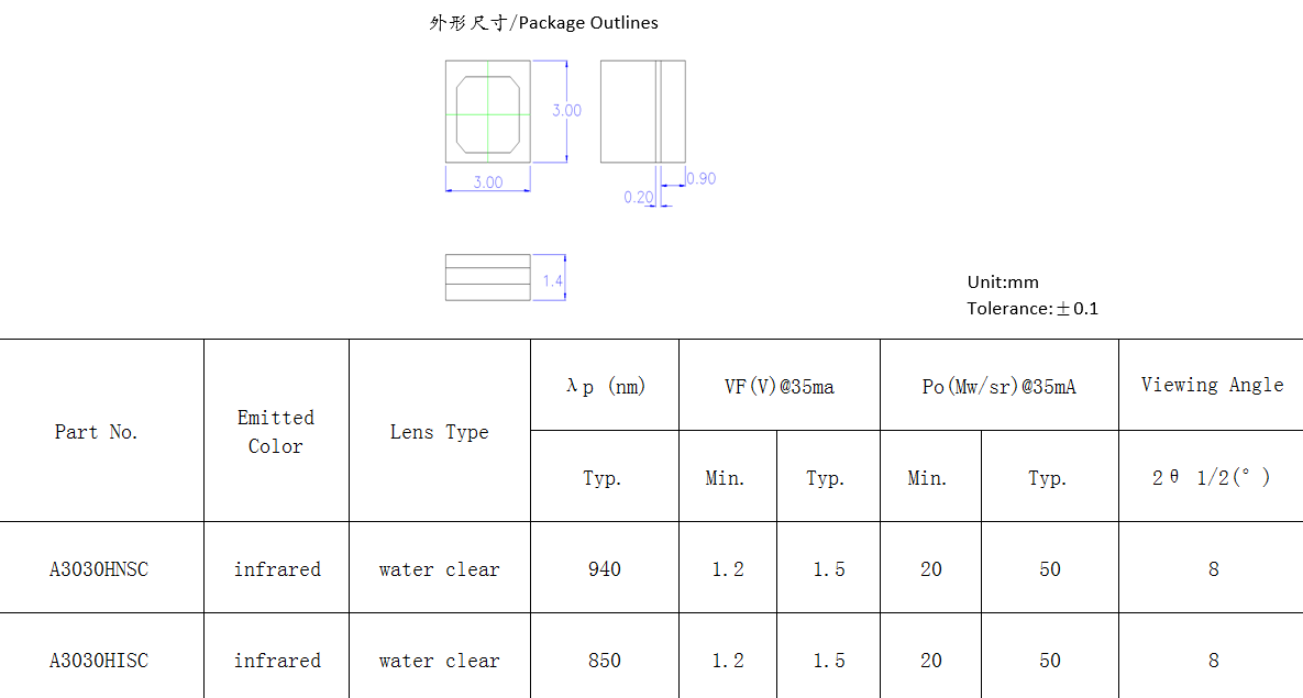 3.0*3.0*1.4 陶瓷類貼片式激光鐳射管。特征:光源波譜純度高,能耗低,穿透力更強,指向性更好,性能壽命穩(wěn)定。 應用:空氣傳感器,粉塵傳感器,光電計量器,虹膜識別,安全識別,光纖通訊,智能家電,物聯(lián)網,ARVR等等諸多領域